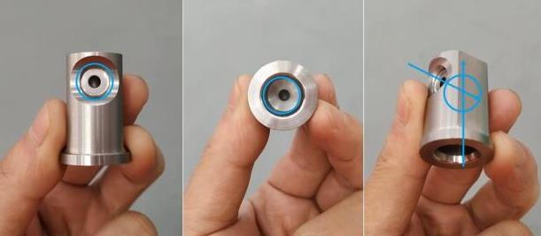 小零件內(nèi)孔去除交叉孔毛刺并不容易,它的孔路有點特殊,首先在底部有個最大的孔,側(cè)壁上有3個小孔,然后頂端有個最小的0.3mm的孔。使用流體拋光機去毛刺的時候,很容易在頂端那個小孔那里出現(xiàn)問題。