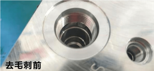 目前大部分液壓閥塊廠家去毛刺,還是采用人工手持氣動磨頭去除。當然也有少部分有實力的廠家采用高壓水去毛刺,但是這兩種方式都有一個問題,就是毛刺去除不徹底的問題。