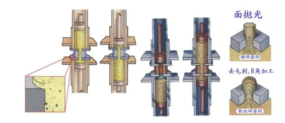 通過特殊的磨料流擠出拋光設備擠出磨料,使用半流體磨料在相對固定的空間流動,通過內部或表面的處理,從而達到拋光和去毛刺作用的特殊加工,加工表面粗糙度可達 ra0.01 微米;